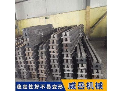 铸铁地轨的材质为强度铸铁HT200-300,工作面硬度为HB170-240,经过两次人工处理(人工退火600度-700度和自然时效2-3年)使该产品的精度稳定,耐磨性能好。可根据需方图纸制作或双方商定生产加工。