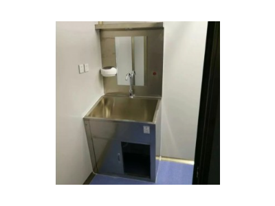 不锈钢制作,一体化无焊缝池体,出水方式有:感应式、膝控式、脚踏式和手动开关,一台洗手池可客户要求选择单一出水方式或多种出水方式。洗手池分高背和低背,高背总高度