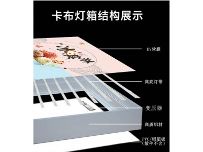 卡布灯箱在结构设计上独具匠心,边框纤细简约,极大地拓宽了视觉视野,让观众的注意力更集中在广告画面上。我们选用高强度的铝合金边框,轻便且坚固耐用,安装便捷灵活,可根据您的需求定制不同的尺寸和形状,无论是方形、圆形,还是异形,都能精准打造。同时,卡布灯箱的画面更换方便,当您需要更新宣传内容时,无需拆卸整个灯箱,节省时间和成本,非常适合需要频繁更换广告信息的商铺、展厅等场所。