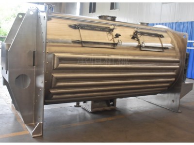 CWLD螺条混合机以效率高、快速混合物料、由搅拌轴的螺旋带运动下,使内外螺旋带在较大范围内翻动物料,内螺旋带将物料向两侧运动,外螺旋带将物料由两侧向内运动,使物料来回掺混,另部分物料被螺旋带推动下,沿轴向径向运动,从而形成对流循环,由于上述运动的搅拌,物料在较短时间内获得快速均匀混合。