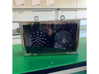 矿用本安型声光报警箱外壳上方有悬挂吊鼻,发光二极管为双色警示灯、双路输出,报警箱能发出红、绿两种颜色的光信号并伴有相应的警示语。
