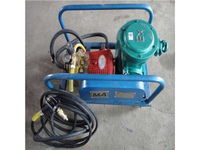 阻化泵是由防爆电机用三角皮带带动液压泵从动轮以700~800r/min进行工作的,液压泵在曲轴转动一转时,分别在三个唧筒内的三套进水和出水阀组件的作用下进行三次吸水和排水,使具有一定压力的水充满了气室座,由于电机的连续运转,曲轴带动连杆连续推动滑块部件作往复直线运动,从而使阻化泵连续工作。