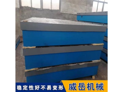 铸铁平板的铸铁质量和热处理质量对使用性能影响关键,或因残存大内应力使工作面变形;或因不使精度不能保持;或因刮削困难得不到数值小的粗糙度。因此使用铸铁平板注意铸铁材料的选择,材质为铸铁HT200-300,生产的检验平台工作面硬度为:HB170-240,按标准计量检定规程执行。采用时效处理等方法铸铁平板的残余应力。