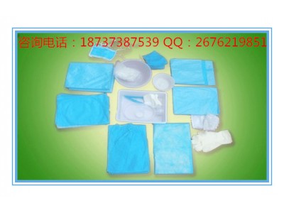 产品性能结构及组成:本品基本配置有包布、手术衣、治疗巾、纱布块、手套、仪器罩;选配产品有中单、洞巾、棉球、消毒刷、绷带、手术刀片、手术刀柄手术刀、镊子、剃毛刀、剪刀、药杯、小碗、方盘、弯盘、小盆。
