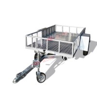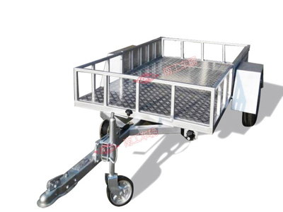 本拖车用铝板制作,重量低,美观实用,额定时速100KM/H,可拖挂于汽车尾部运载ATV全地型沙滩车、摩托车等,可按要求定制,可加装车厢、账篷等做成小型房车用于越野露营,用低廉的成本体验不一样的生活方式。