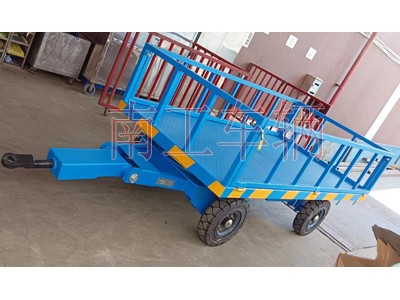 3吨下翻护栏牵引工业平板拖车南工车辆长期非标订制,南工车辆从小吨位0.5吨开台到120吨重型工业平板拖车,均可定制,用于仓库码头、工厂车间、机场、物流园区短途周转运输物品。