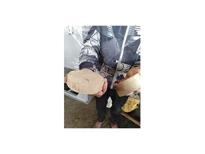 木屑压块机模板固定在上模内,是成形制产品的主要部分,抽板缸位于抽板架的尾部,通过抽板支架吊装在上梁上,抽板架滑动在滑道中,布料部分安装在抽板架尾部,由电机通过齿轮做正反布料,下模固定在工作台中板上,冲头插入上模内,形成压力腔。清料装置连接在工作台前后,由电机通过减速机带动链条完成清除余料的任务(可间断和连续工作,自行设定),拖成品装置安放在前托板前边,由电机通过减速机带动皮带运行,完成托出产品块工作,动作设置在程序内,需调整时可按按钮,抬手即停。