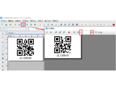 5. 点击软件顶部的“打印预览”按钮,翻页查看批量生成的二维码标签,预览无误就可以直接连接打印机打印出来了。