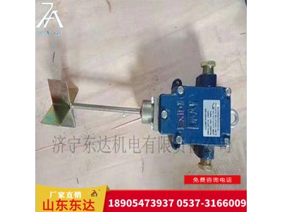 2. 工作原理:传感器工作原理为机械开关式。当出现运输机埋机头、满仓、满煤漏斗时,煤触及堆煤传感器的触头并推动触杆偏离中心线之间的动作摆角大于 30±3°时,传感器动作,传感器能自动切断运输机的电源实现煤位保护,连接的控制箱语音报警。
