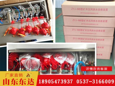 ZYJ(A)型矿井压风供水自救装置,此装置在压风自救装置的基础上增加了,进水管、净水过滤器、水型压力表、排水装置(多组)等。同样箱体、安装板、总进气管、总进水管采用不锈钢制造而成。一箱六组供水,六组供气(可根据要求设计组别)。